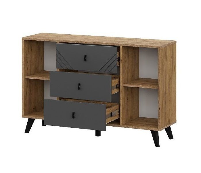 Интернет-магазин "Мебель 24" рад предложить БАЙКАЛ Комод 3 ящика двухстворчатый (Графит/Дуб золотой) по привлекательной цене, от производителя NN МЕБЕЛЬ.