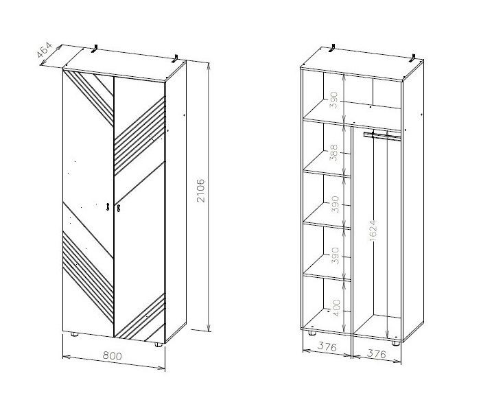 Размеры (Ш*В*Г)(мм): 800*2106*464