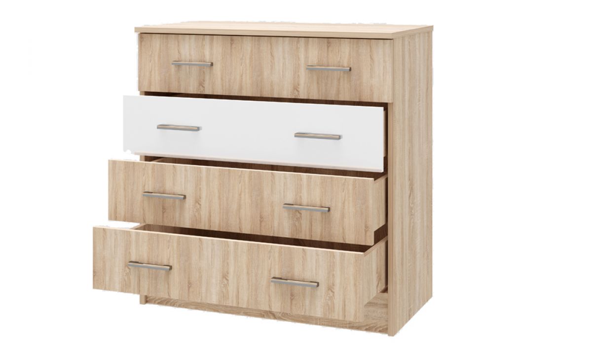 Комод для хранения белья с 4-мя выдвижными ящиками на роликовых направляющих.