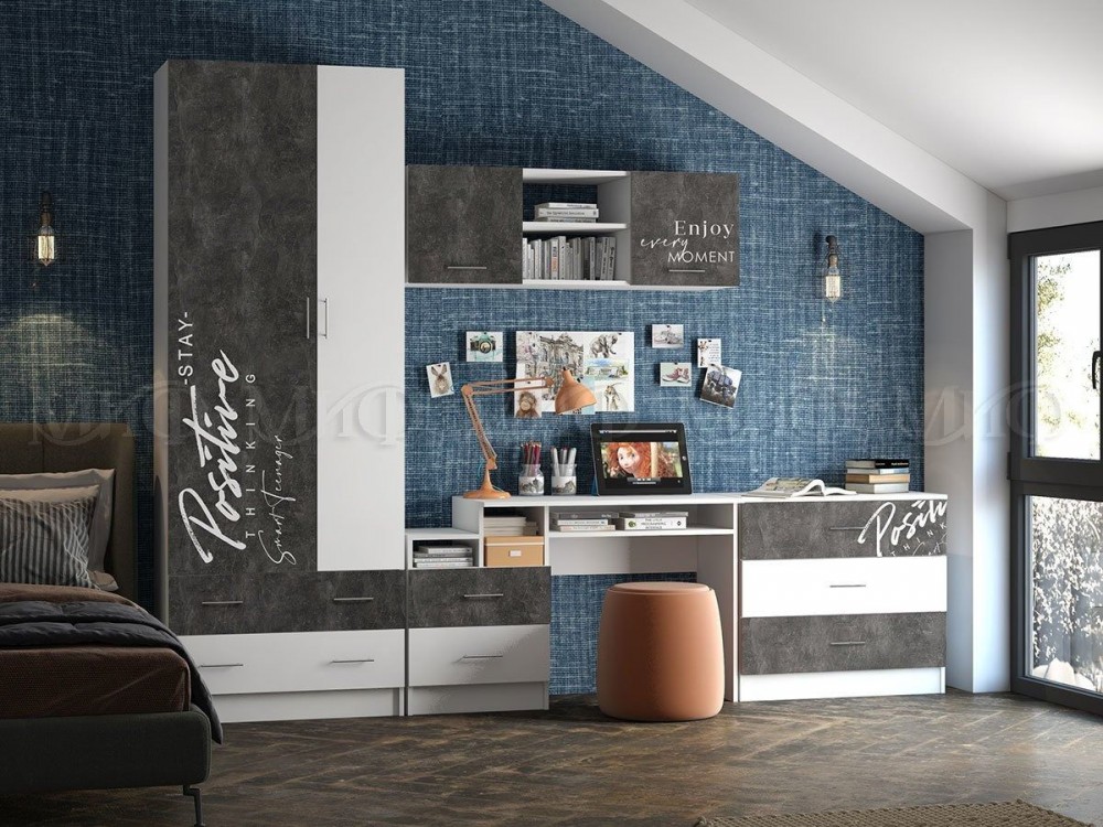 Цвет: Бетон темный с фотопечатью-белый / белый
