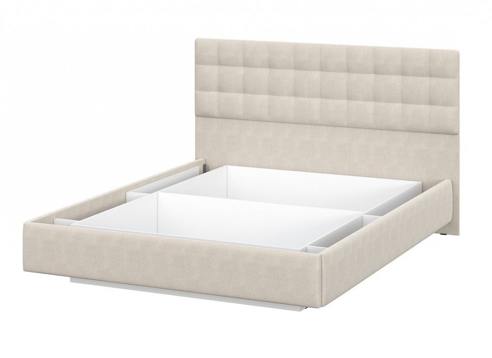 Кровать двойная №2 (универсальная 1.6х2.0) Серия 2 + основание (Белый/Бежевый ткань/Квадро Бежевый ткань)