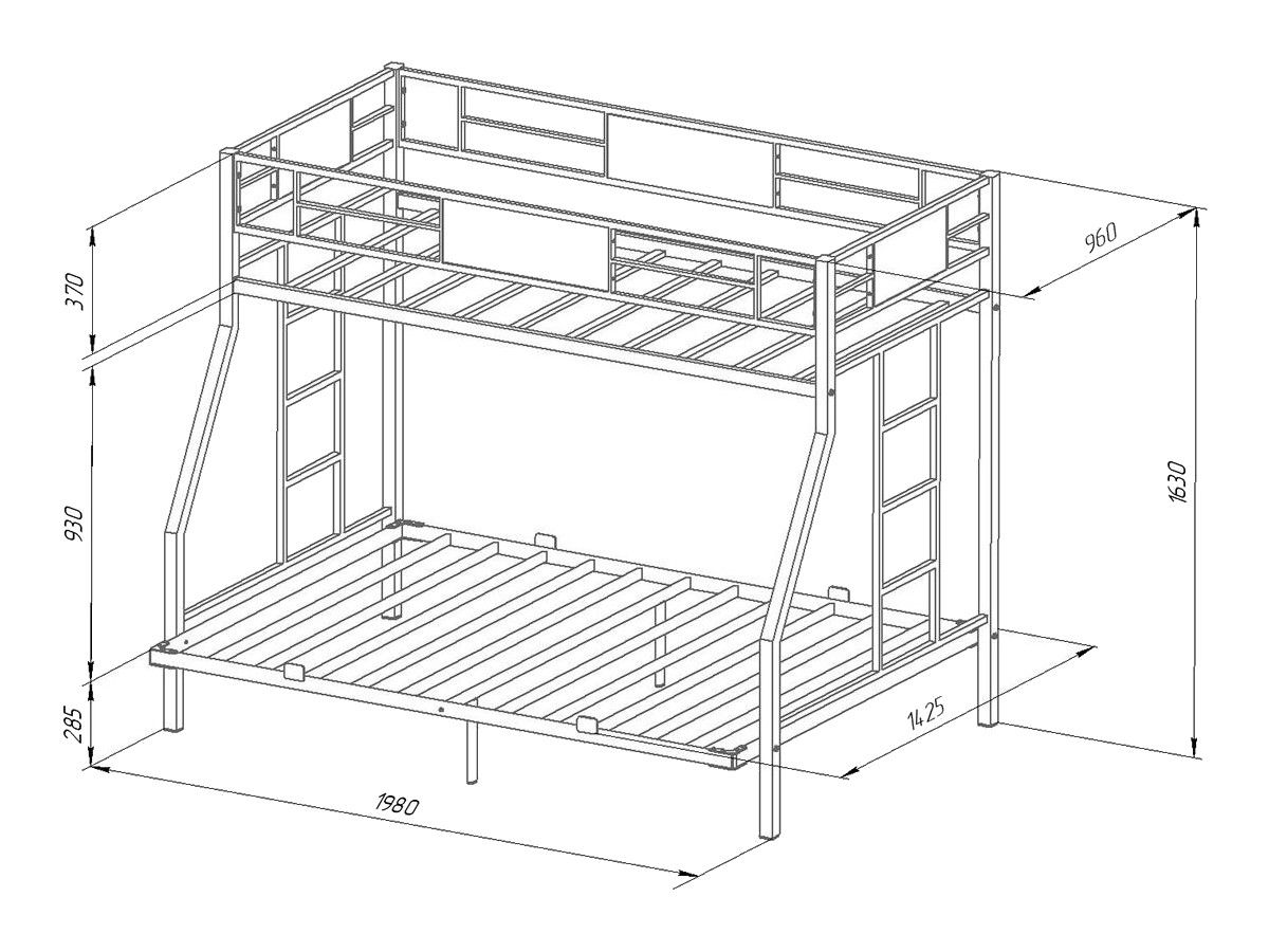 Спальное место: верхнее 900*1900 / нижнее 1400*1900 мм