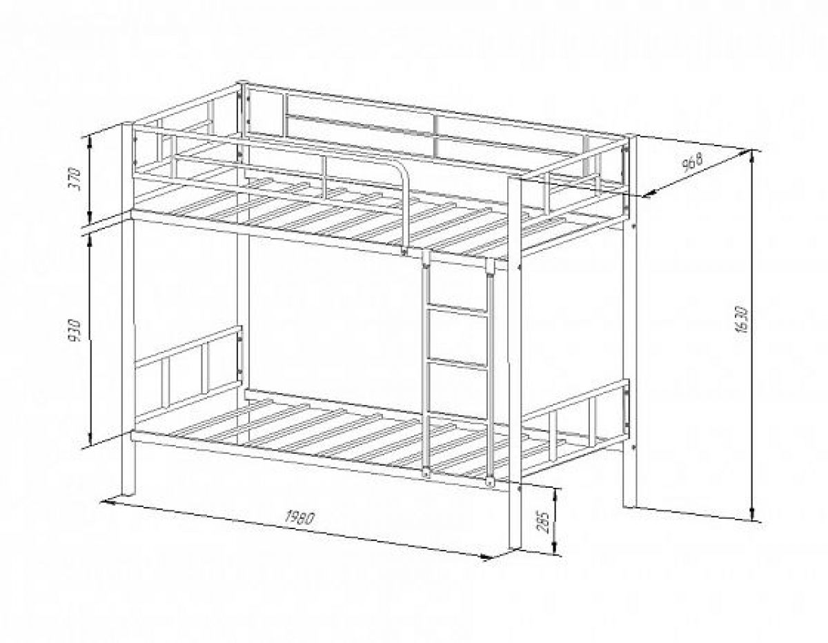 Металлическая двухъярусная кровать "Севилья-2.01" может использоваться в спальне подростков и взрослых, так как способна выдерживать нагрузку до 180 кг на одно спальное место. Конструкция кровати предусматривает два спальных места размером 90*190 см каждое. Верхнее спальное место защищено бортиками. Прочную лестницу можно установить справа или слева. В отличие от кроватей из ЛДСП кровать из металла выглядит менее громоздкой.
