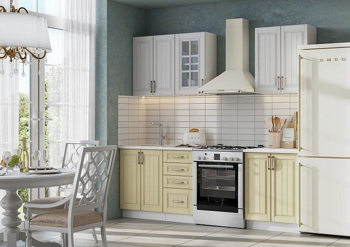 Интернет-магазин "Мебель 24" рад предложить Кухонный гарнитур Лондон 1600 (белый/белый/дуб крем) по привлекательной цене, от производителя Интерьер Центр.