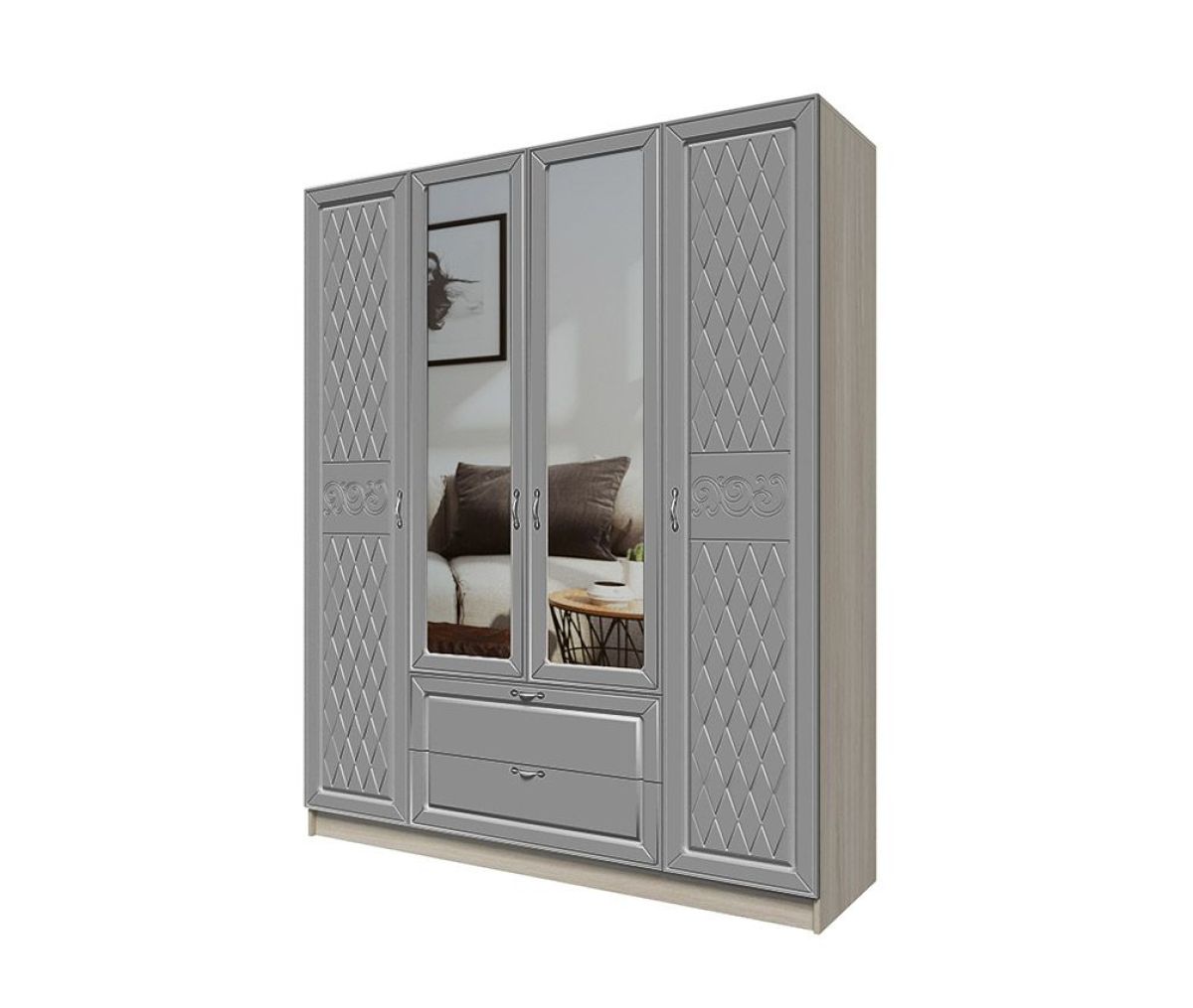 Париж № 1 Шкаф 4-х дв. с зеркалами (ясень шимо свет/серый софт премиум)