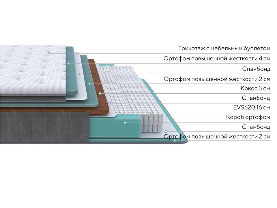 Жесткий матрас, в составе которого высокоплотная пена и кокос