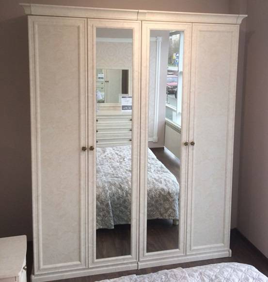 Шкаф 4-х створчатый (2+2) с Зеркалом "Афина" крем корень