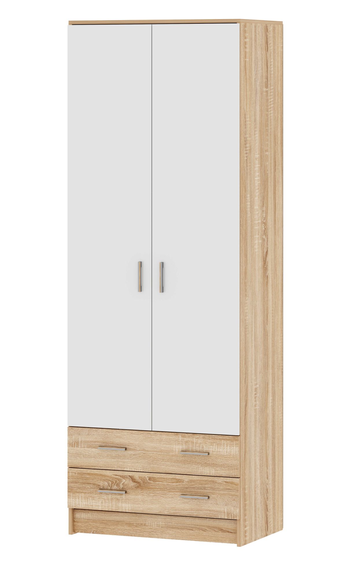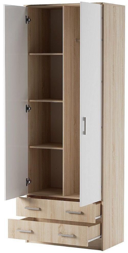 Комбинированный 2-створчатый шкаф с 2-мя ящиками на роликовых направляющих. Предназначен для хранения белья и верхней одежды.