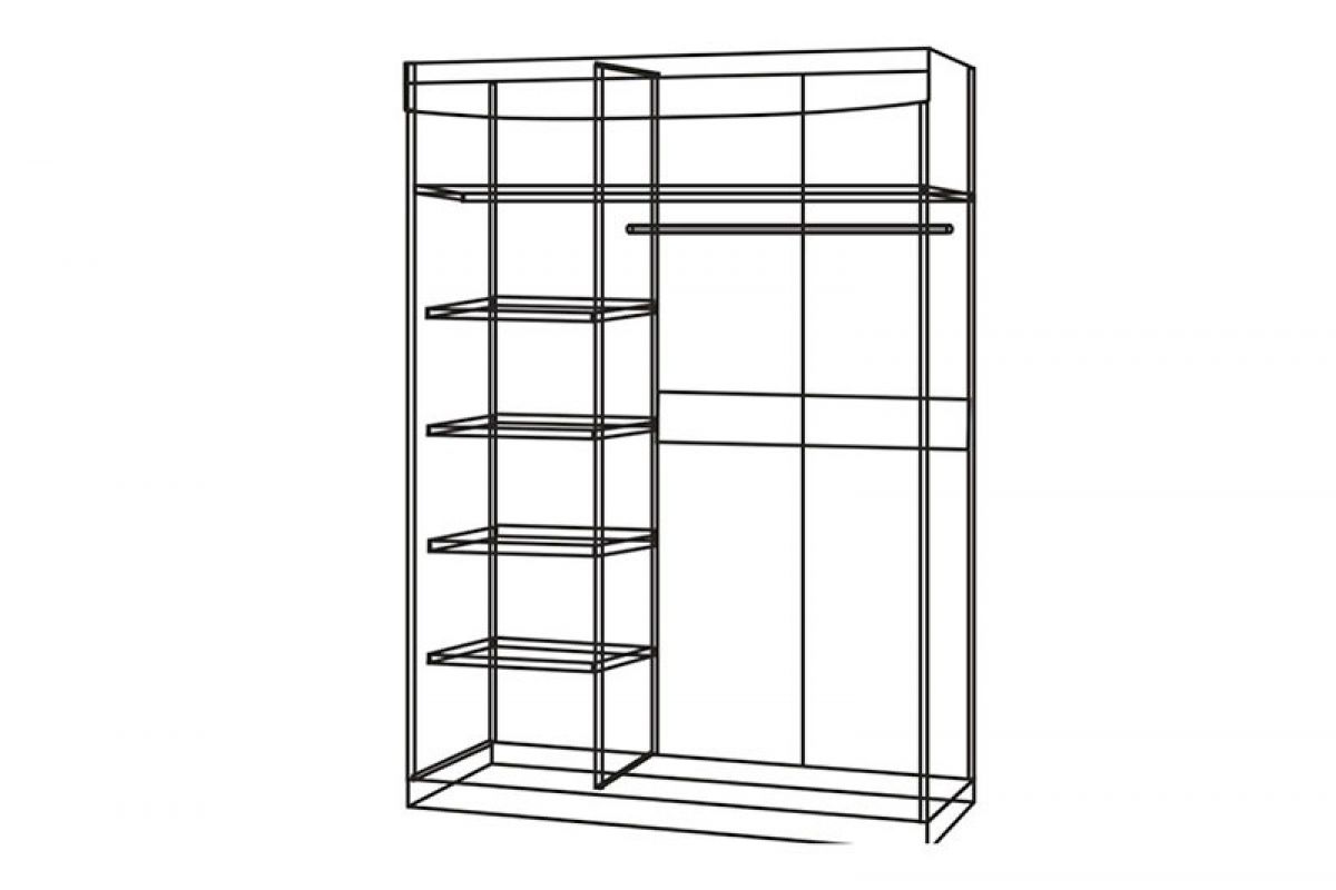 Внутри шкафа находятся удобные полки для хранения вещей и хромированная штанга.