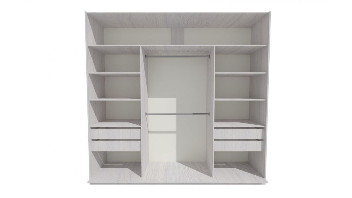 Шкаф-купе 2250 серии SILVER S3+S1+S4 B22+PL3 (по 2 ящика лев/прав+2 штанги) профиль «Серебро»