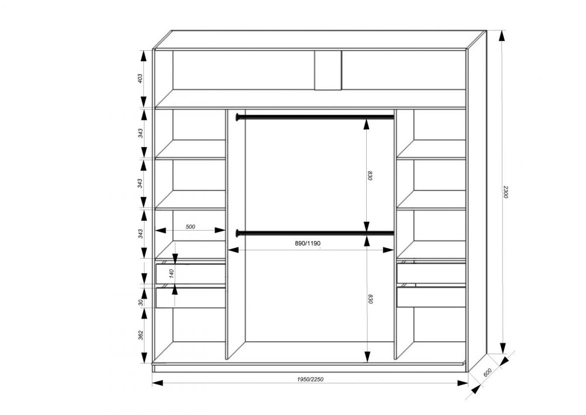 Размер (Ш*Г*В): 2250*600*2300 мм