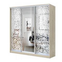 Фасад: 1 дверь Зеркало + 2 двери Зеркало с пескоструйной обработкой
