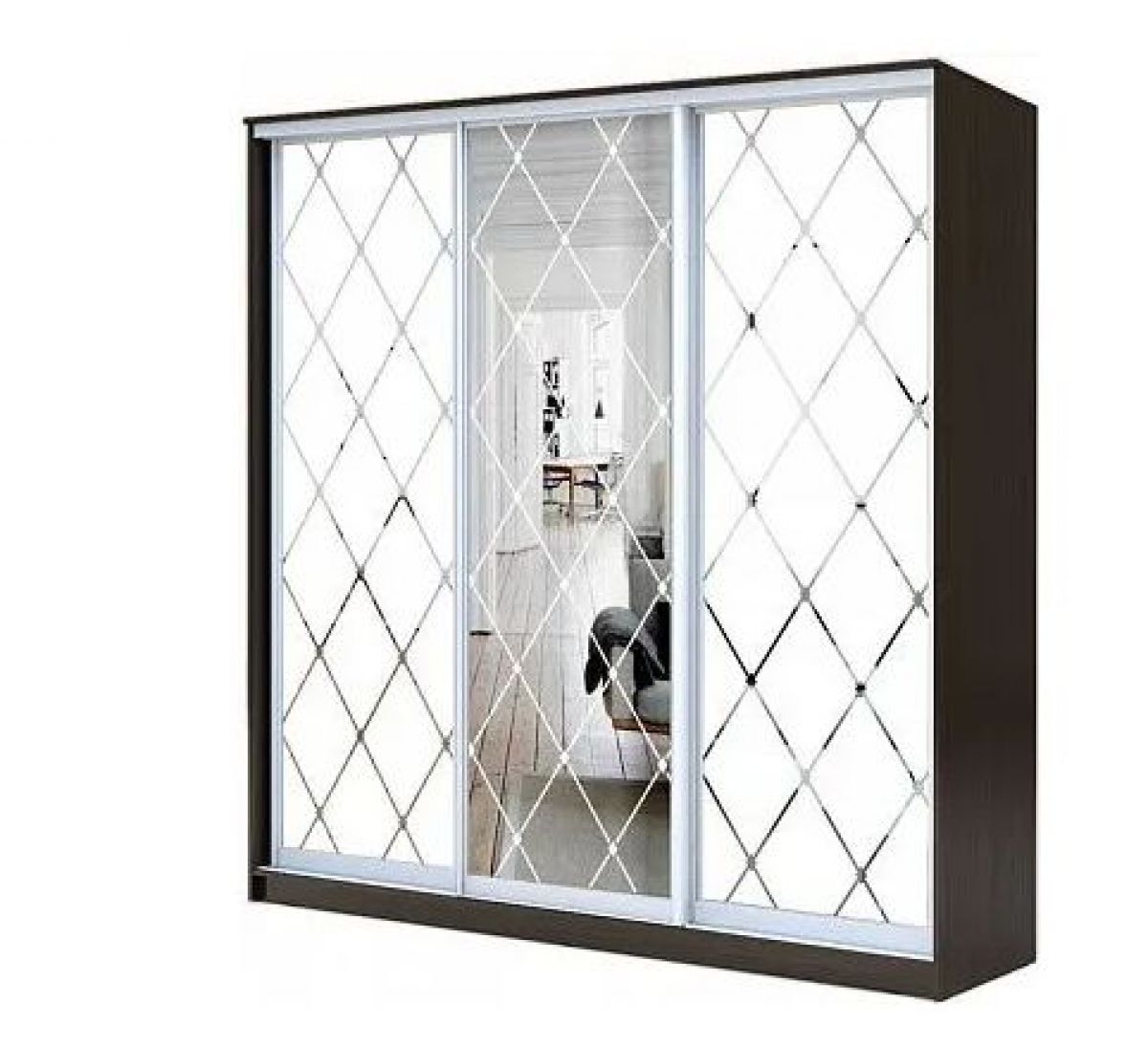 Фасад: 3 двери Зеркало с пескоструйной обработкой