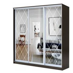 Фасад: 1 дверь Зеркало + 2 двери Зеркало с пескоструйной обработкой