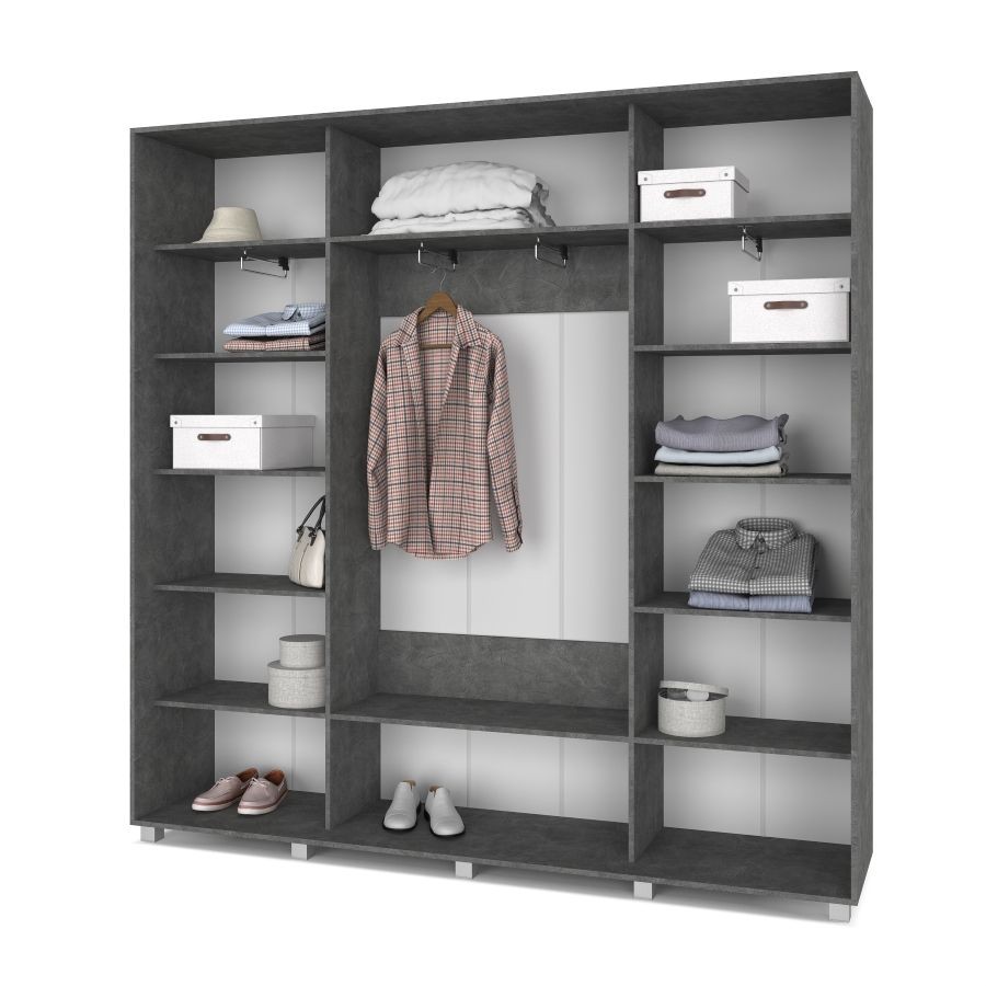 МАРТИН Шкаф-купе с зеркалами Камень темный (2400*450) М443