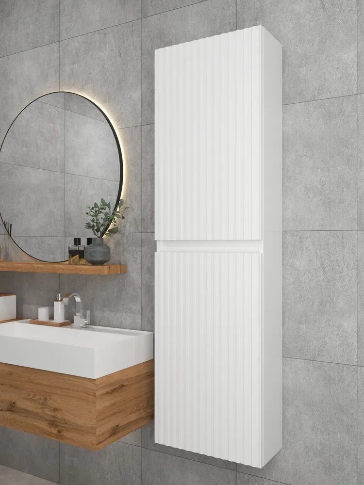 Шкаф пенал навесной для ванной MH11-MA 450х1548 (Белый-М 10.1.1) Белый глянец