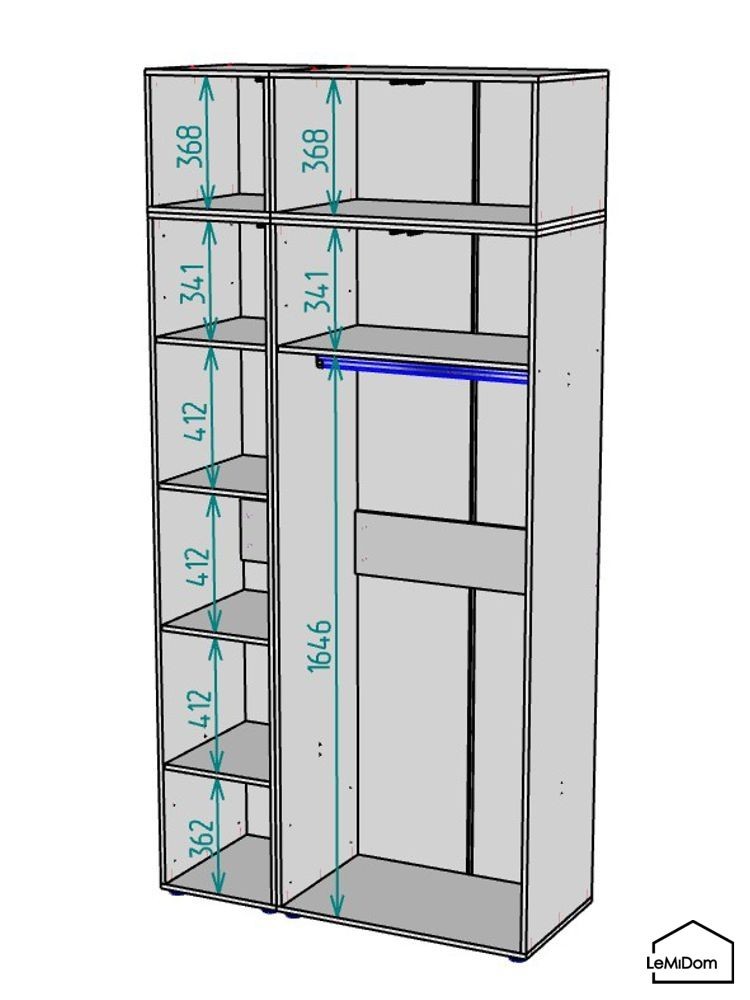• У шкафа торцевая пластиковая ручка (100см), а у антресоли дверь без ручки (система открывания PUSH to OPEN).