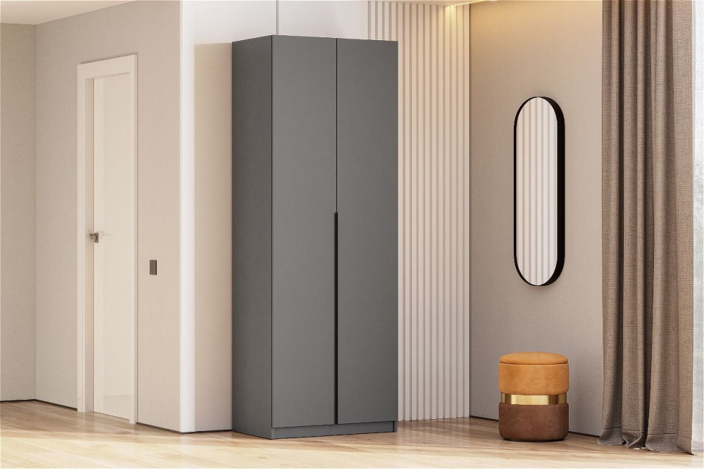 Интернет-магазин "Мебель 24" рад предложить Шкаф ШК-5 + 2 полки + ящики (800) Графит по привлекательной цене, от производителя NN МЕБЕЛЬ.