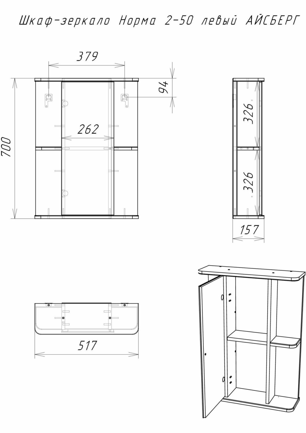 Шкаф-зеркало Норма 2-50 левый АЙСБЕРГ (DA1607HZ)