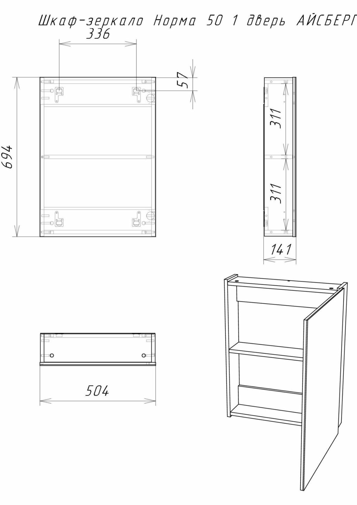 Шкаф-зеркало Норма 50 1 дверь АЙСБЕРГ (DA1621HZ)