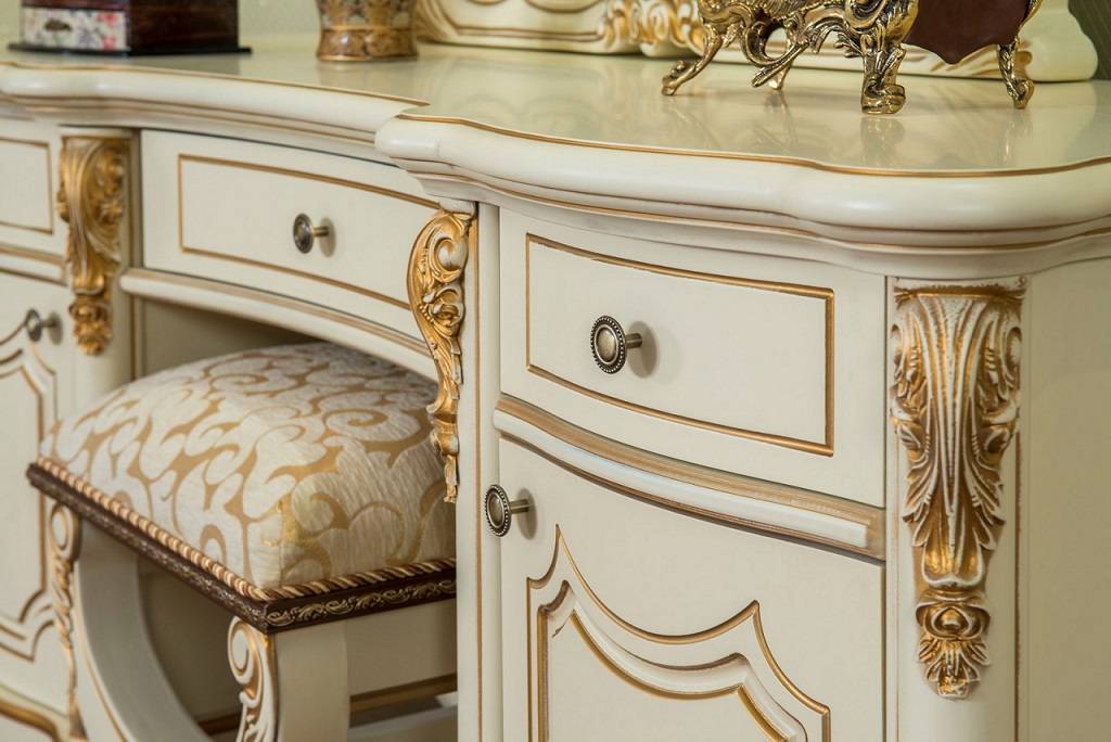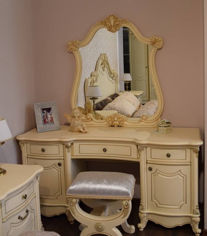 *Пуф для туалетного столика идет в подарок и не входит в номенклатуру комплекта, поэтому его форма, цвет и качество выполнения остается на усмотрение производителя. Рекламации на подарочный пуф не принимаются, клиент оставляет за собой право принять или отказаться от него.