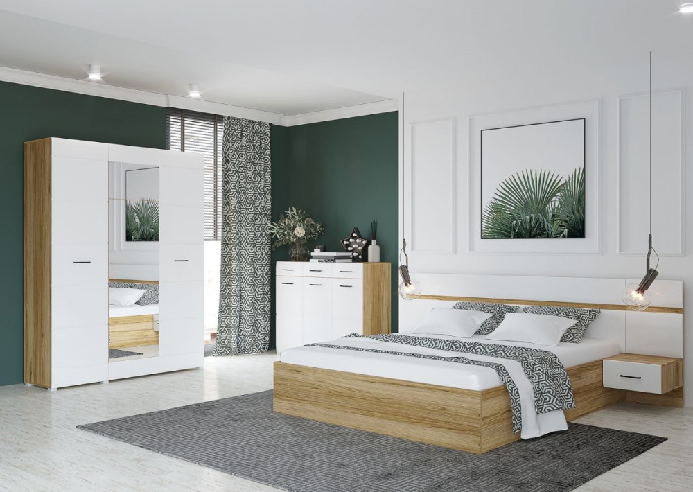 Спальный гарнитур НЕНСИ (модульный) Крафт золотой/Белый глянец