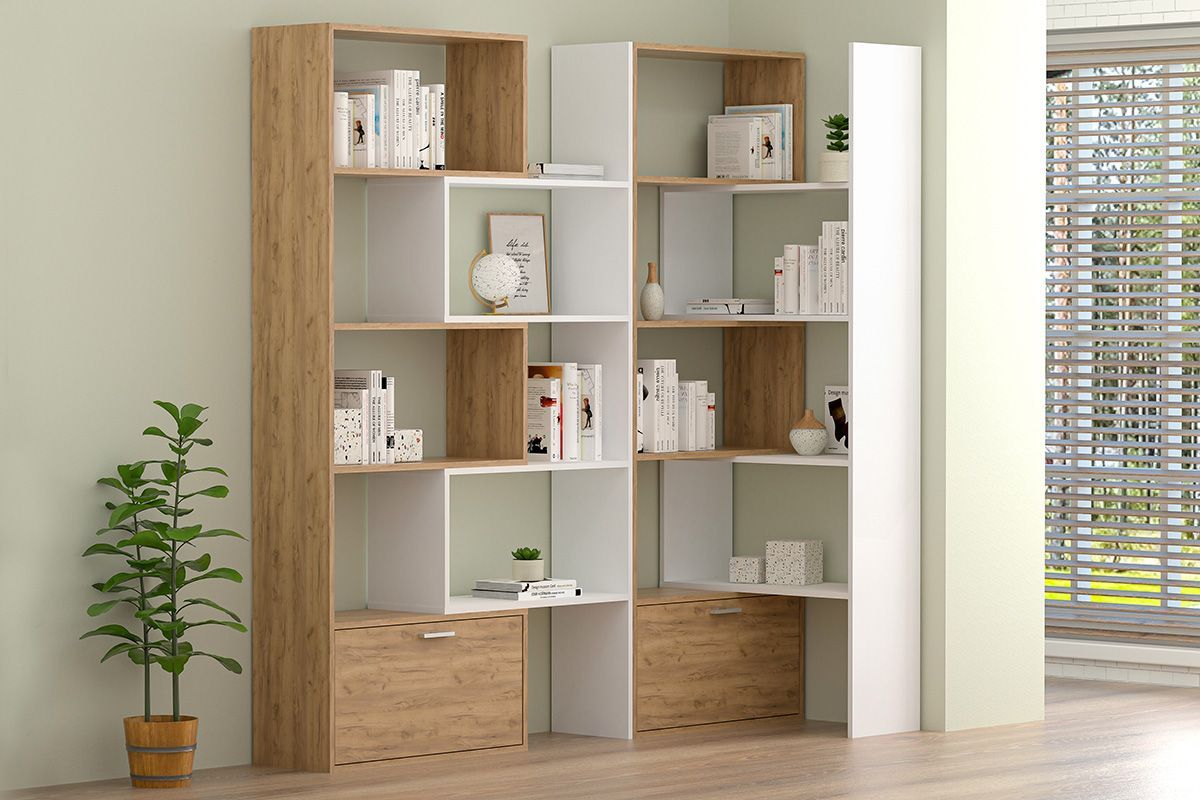 Интернет-магазин "Мебель 24" рад предложить Стеллаж раздвижной (ЛДСП дуб крафт золотой/белый) по привлекательной цене, от производителя Диал (Пенза).