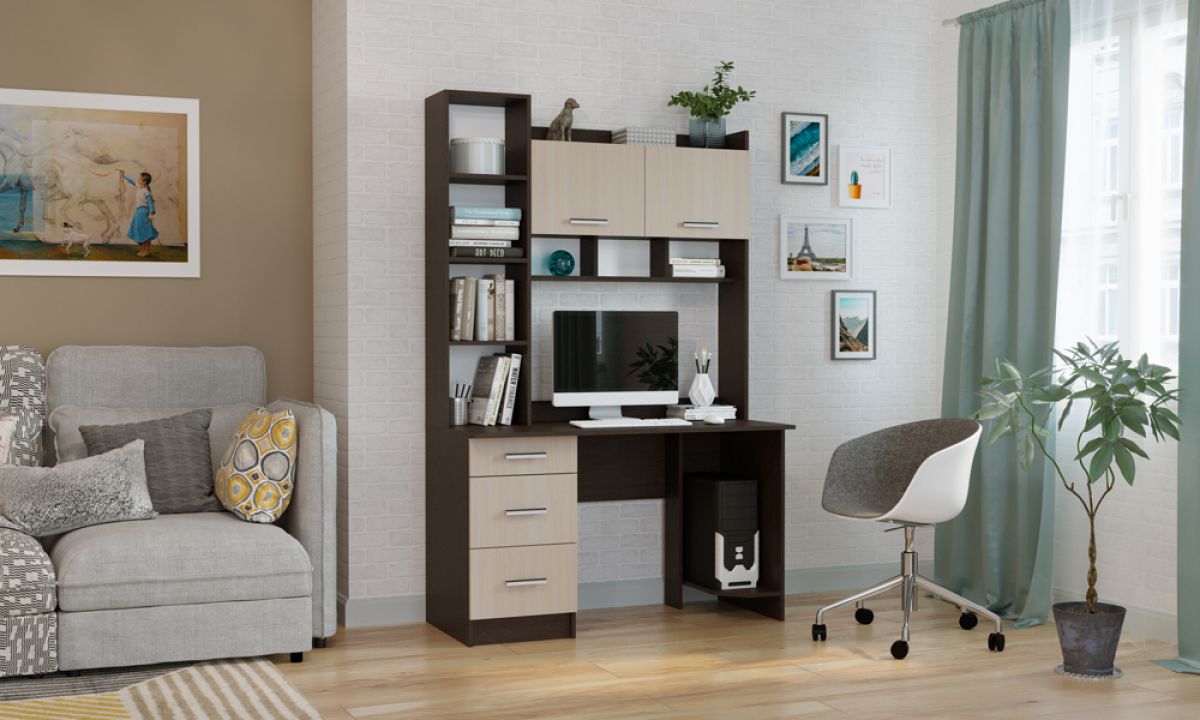 Письменно-компьютерный стол №5 с 3-мя ящиками на роликовых направляющих и надстройкой.