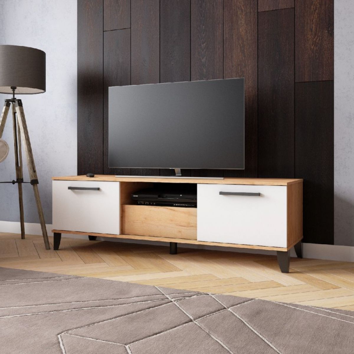 Тумба под ТВ ТВМ-2 Дуб крафт золотой /ЛДСП Белый