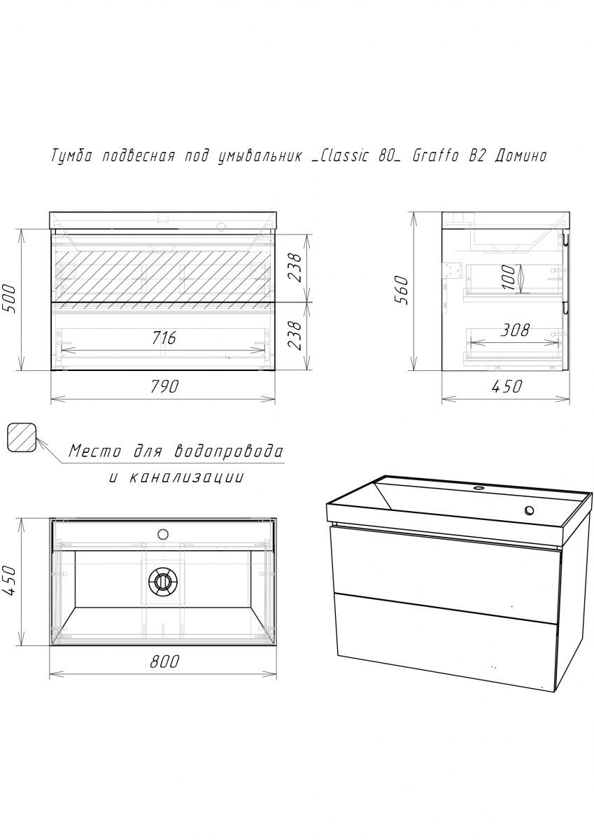 Тумба подвесная под умывальник "Classica 80" Graffo графит матовый В2 Домино (DGr2106T)
