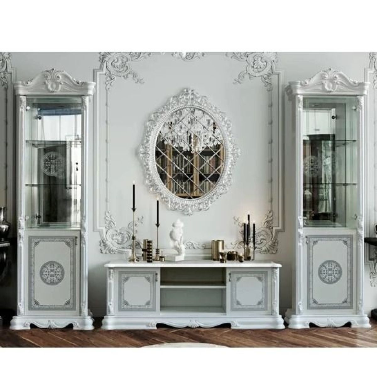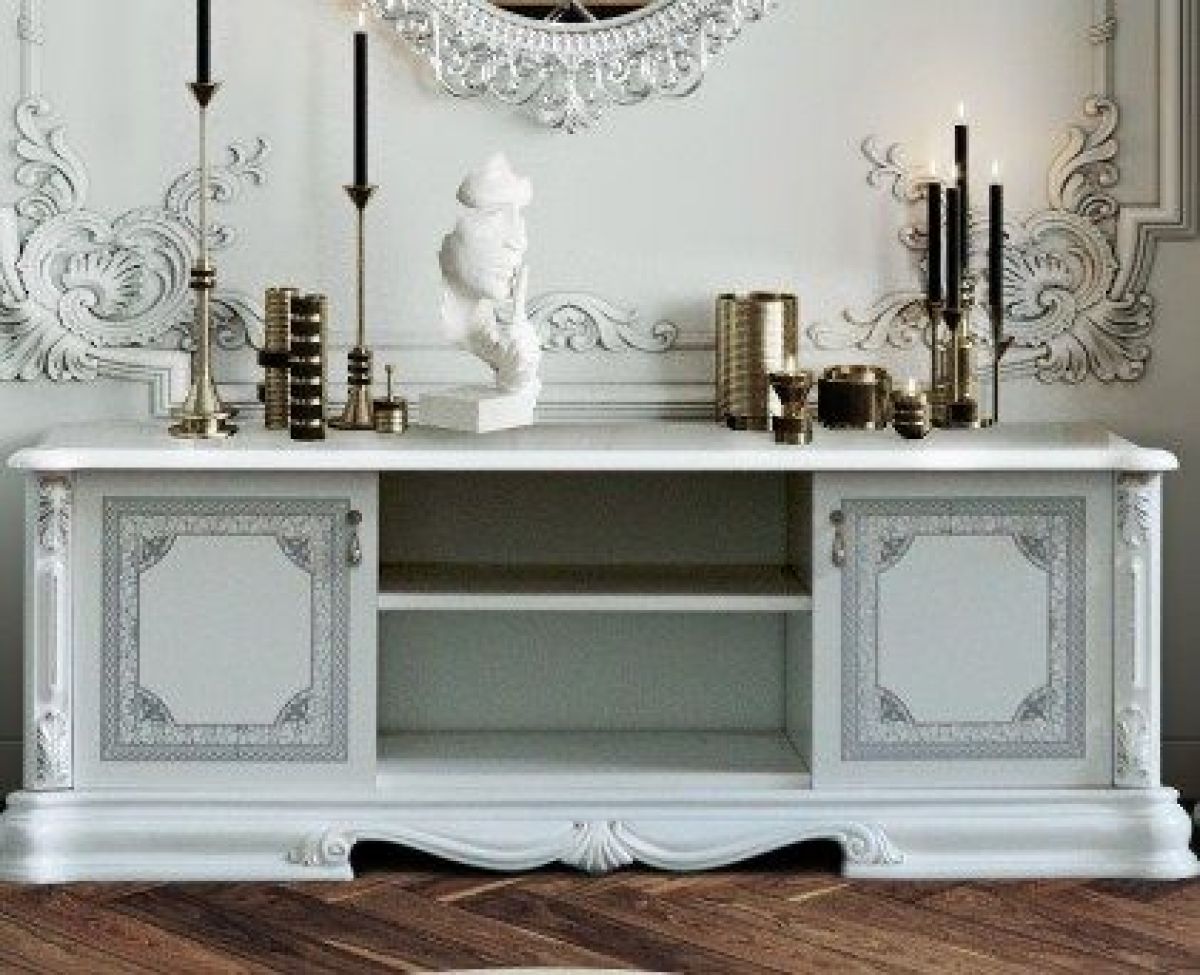 Тумба ТВ (12.301) Грация (белый/серебро)